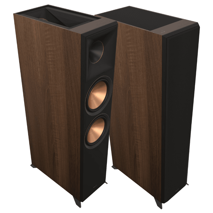 Thay vì sử dụng gỗ MDF phủ kín đáy loa như các model tiền nhiệm trước đây, Klipsch dùng nhôm cứng thiết kế chân đế hở lót đệm cao su triệt rung cho dòng loa mới của mình nhằm giảm thiểu diện tích bề mặt tiếp xúc với sàn nhà giúp dải trầm hoạt động chính xác và hiệu quả, tiếng bass trở nên chặt chẽ và chính xác hơn hơn rất nhiều.