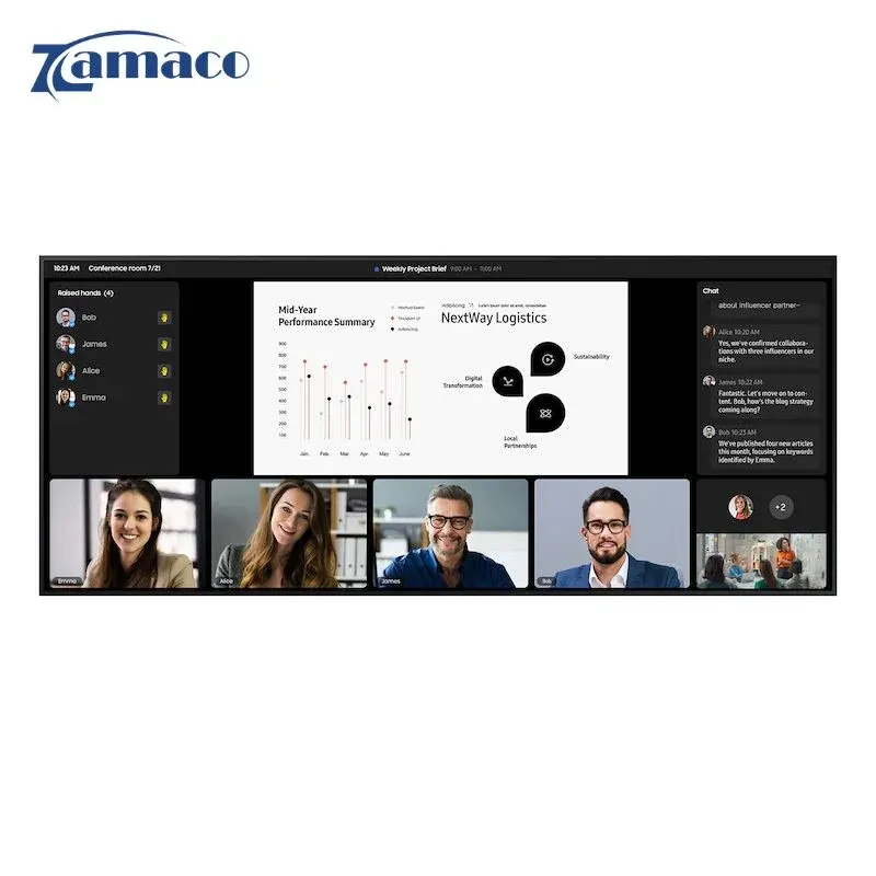 Màn hình sở hữu tỉ lệ 21:9 với chiều ngang vượt trội, cho phép hiển thị đồng thời nhiều khung nội dung: từ slide thuyết trình, biểu đồ dữ liệu cho đến khung hình video call. Nhờ vậy, các buổi họp trực tuyến trở nên hiệu quả hơn, giúp người tham gia dễ dàng theo dõi cả người trình bày lẫn tài liệu minh họa trên cùng một màn hình.