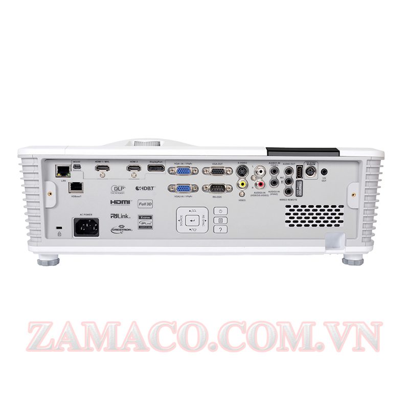 - Cổng kết nối: Vào: HDMI x2 / VGA x2 / DisplayPort x1 / HDBaseT x1 / S-Video / Video / Audio (R / L) x1 / Audio in x2 / Microphone, Out: VGA x1, USB Type A (for power), Audio Control: RS232C / Cổng từ xa có dây / 3D Sync out / RJ45 / 12V trigger, Dịch vụ: USB